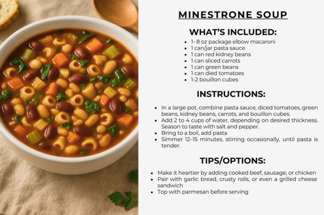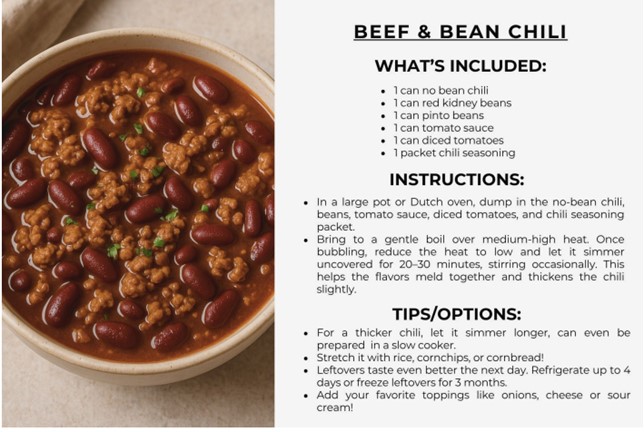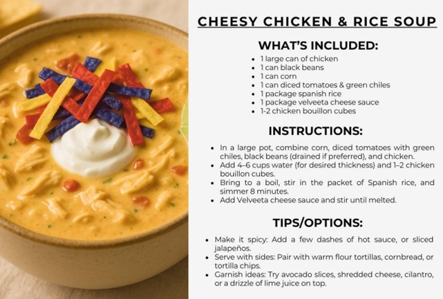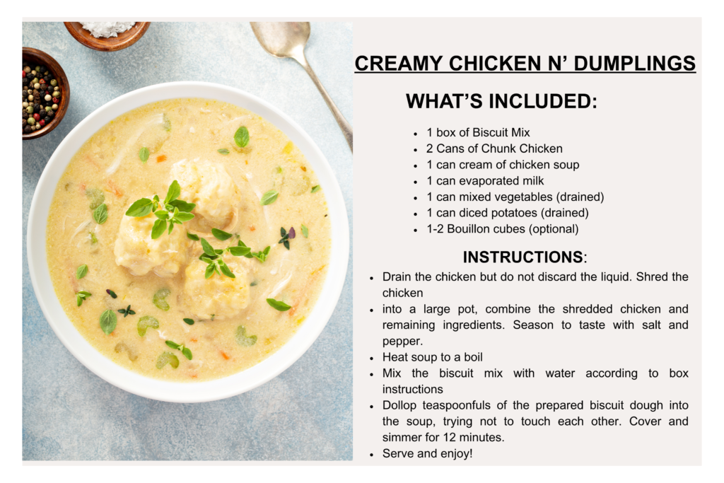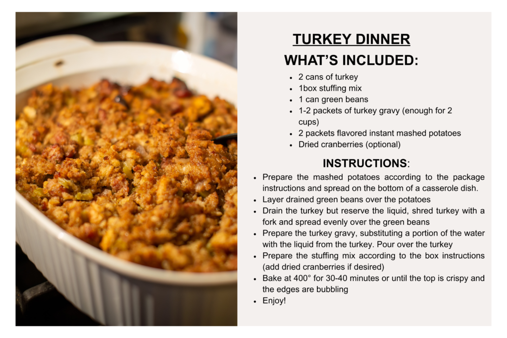 4️⃣ We’ll use the donated items to make “Meals- In-A-Bag” using the recipes below, and make sure each bag reaches families in need this season. 🍲